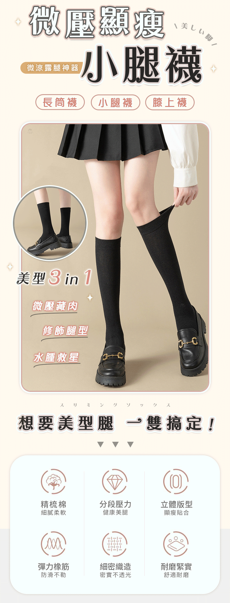 7分鐘前微壓顯瘦小腿襪 - 買一送二/ 再送免運 NT$499