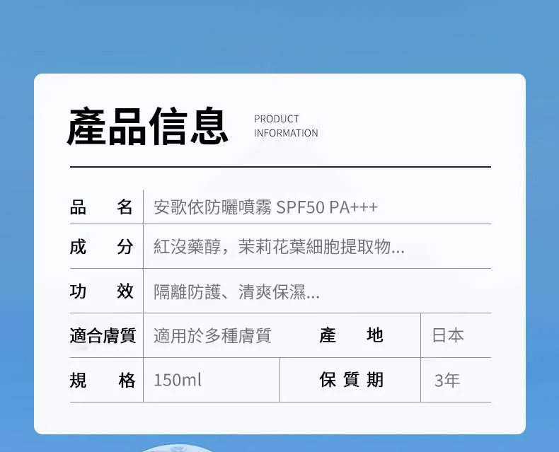 20分鐘前安歌依光圈防曬噴霧,細密噴頭設計 噴頭360°可旋轉自然膚惑,隔離防曬一瓶搞定 - 特大優惠「安歌依光圈防曬噴霧」4入96%用戶的選擇!NT$1198【限時免運】