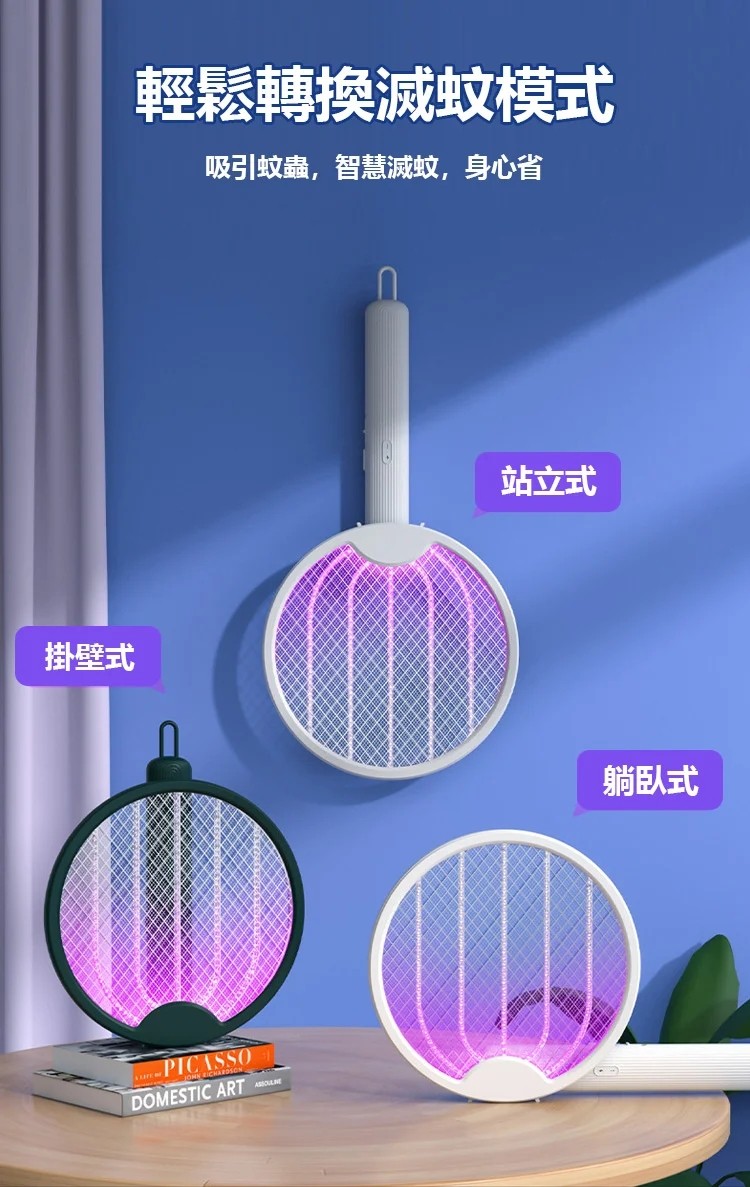 4分鐘前熱賣 四合一多功能電蚊滅蚊拍,立式/壁挂/手持式/可摺叠,雙效自動滅蚊! - 【限時下殺】1入組-NT$990